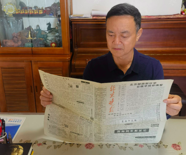 1993年10月23日的《北京晚報》刊載了《國際列車剿匪記》節(jié)選,文末署名的通訊員便是時任北京鐵路公安局宣傳處副處長的艾安軍。如今,艾安軍還保留著當(dāng)年的《北京晚報》,幾張略顯發(fā)黃的舊報紙被他小心翼翼地折起、收好,“這些都是轟動一時的歷史印記?!??