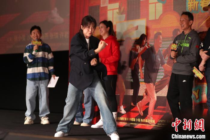 賈玲現(xiàn)場秀拳擊天賦。中新網記者 張亨偉 攝