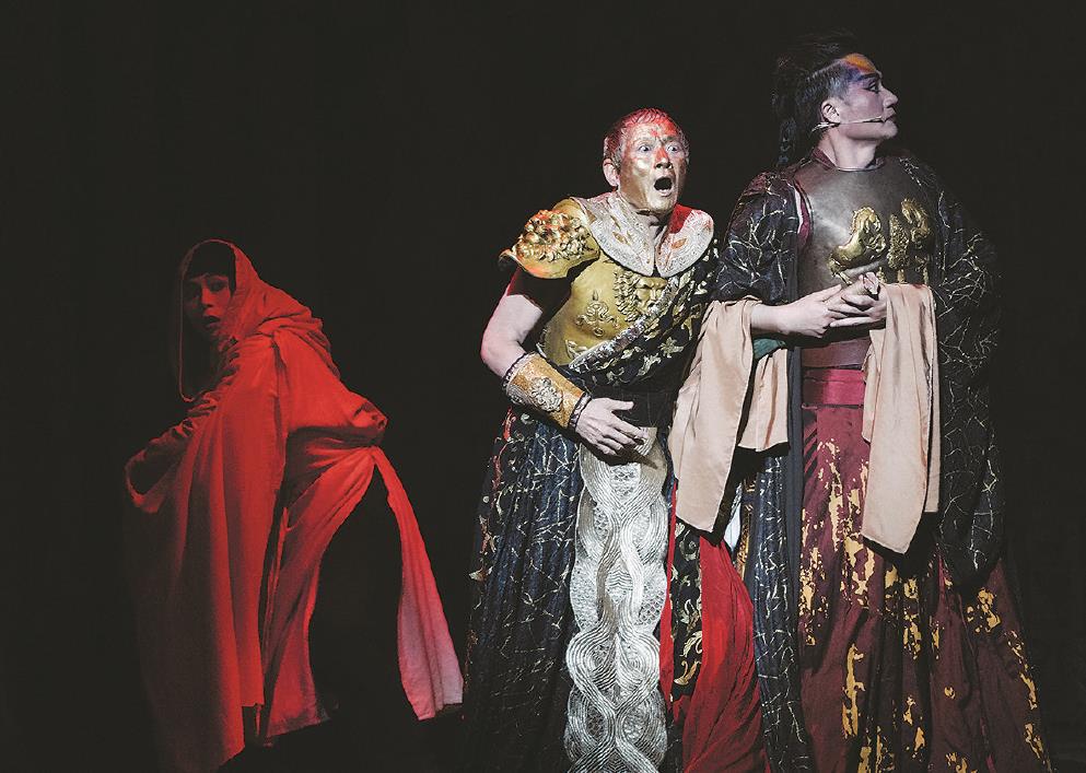 京昆新歌劇《凱撒》是根據(jù)經(jīng)典莎劇《凱撒大帝》進(jìn)行的當(dāng)代創(chuàng)作,滬臺藝術(shù)家吳興國、張軍首度合作。圖為劇照。 (演出方供圖) 為了京昆新歌劇《凱撒》的上海演出,當(dāng)代傳奇劇場藝術(shù)總監(jiān)、著名演員吳興國提前一周抵滬,與“昆曲王子”張軍一起排練。今年2月,這部用京劇和昆曲演繹的莎士比亞名劇《凱撒大帝》在第52屆香港藝術(shù)節(jié)完成世界首演。作為2024上海·靜安現(xiàn)代戲劇谷展演劇目,《凱撒》連日來在FANCL藝術(shù)中心熱演。這部由香港委約,滬臺兩地創(chuàng)作者精誠合作的作品,憑借東西方文化、戲曲與音樂的熱烈碰撞、大膽探索、凌厲呈現(xiàn)引發(fā)申城觀眾矚目。 因?yàn)殪`魂的共通,多地藝術(shù)家與觀眾一齊聆聽420年前莎士比亞的訴說,尋找戲曲走向未來的生命力。而《凱撒》此番內(nèi)地首演,也是與申城戲劇迷“久別重逢”。早在2019年的中國上海國際藝術(shù)節(jié)演出交易會上,吳興國就與張軍帶來了“片段式”驚鴻一瞥。念念不忘,必有回響。這部創(chuàng)新之作的背后,是志同道合的兩岸藝術(shù)家的相互扶持、相互激發(fā),致力于推動同宗同源的中國傳統(tǒng)文化創(chuàng)新發(fā)展,不斷向前。 踩厚底的凱撒,期待舞臺更加多彩 演員踩厚底、穿水袖,身著衣服的樣式則是古羅馬風(fēng)格,這樣的《凱撒大帝》對于觀眾來說是從未有過的。劇中,吳興國與張軍皆一人分飾三角——扮演凱撒、賈修司、安東尼的吳興國與擔(dān)綱卜拓思、詩人、預(yù)言者的張軍在舞臺上開啟了一場破天荒的京昆對話。收到吳興國的出演邀請,同樣熱愛創(chuàng)新的張軍幾乎沒有猶豫地接下。“兩岸戲曲人心意相通,藝術(shù)的交流總是令人興奮。” “我們要用戲曲的方式來演繹這個(gè)故事?!薄秳P撒》創(chuàng)排之初,吳興國就與張軍確認(rèn)了演劇思路,作品里的每一個(gè)角色都通過老生、花臉、武生、小生、丑角等傳統(tǒng)戲曲行當(dāng)來詮釋?!岸嗌倌暌院?,我們這一場壯烈的戲劇將要在還沒有產(chǎn)生的國家、用還沒有發(fā)明的語言去重新演繹,凱撒到底要流多少次血?”張軍對于莎士比亞原著中的這段文字印象深刻?!拔蚁?,當(dāng)昆曲《牡丹亭》在1598年被創(chuàng)作出來以后,或許湯顯祖也是這么想的?!彼硎荆皯騽〉牧α吭谟诿恳淮鷳騽∪说闹貜?fù)與再創(chuàng)作,從而成為永恒?!?/p> 與當(dāng)代傳奇劇場此前的創(chuàng)作一樣,吳興國希望《凱撒》是一部可以通向國際的作品。為此,他為《凱撒》選定了歌劇這一形式,并找到合作多年的上海老友、著名作曲家許舒亞譜曲?!熬﹦『屠。拖窀鑴±锏牟煌暡?,為舞臺增添了不同的色彩?!眳桥d國表示。然而,戲曲與現(xiàn)代音樂的融合并非易事,甚至可以說讓兩位演員吃足了苦頭。面對十幾種樂器構(gòu)成的歌劇譜曲,演員幾乎抓不到主旋律的唱腔。間奏要空幾拍?第幾拍要開口?演員最基本的張嘴都成了難題。經(jīng)過數(shù)不清次數(shù)的練習(xí),二人逐漸找準(zhǔn)了感覺,效果也給人帶來驚喜?!爱?dāng)我們拼命把曲譜背得很熟,這份力量真的很大,演員跟角色完全融在一起了?!眳桥d國對記者表示。 叛逆的“拼命三郎”,從沒忘記傳統(tǒng) “拼命”二字似乎也是吳興國對舞臺的如實(shí)寫照。吳興國的妻子、《凱撒》制作人林秀偉將記者領(lǐng)到側(cè)臺,那里搭起了小小的吳興國個(gè)人化妝間。演出前,三疊顏料以及濕巾紙已經(jīng)放置妥當(dāng)?!秳P撒》全劇共九場戲,吳興國上臺七場,其中五場需要進(jìn)行服裝和妝容的調(diào)整。金色是凱撒、灰色是賈修司、肉色是安東尼,為了不同角色的切換,吳興國需要卸妝六次,為臉部涂上新的顏色,每次空檔僅給他留出不到五分鐘的時(shí)間。 臺上還是臺下,吳興國的狀態(tài)都好得驚人,無論是與記者對話中銳利的眼神,還是演出中極具爆發(fā)力的表現(xiàn),都讓人難以察覺到他正在經(jīng)歷膝蓋的傷痛。吳興國曾表示,《凱撒》有讓他重返壯年的感受,他將其歸結(jié)于“責(zé)任感的魔力”?!拔易约阂芯珰馍瘢@樣才能給年輕人一些激勵(lì),讓他們更有勇氣表達(dá)自己的想法。”此次《凱撒》到上海演出,吳興國共帶了六名當(dāng)代傳奇劇場的年輕演員,其中也有剛剛參加完武漢“戲碼頭”戲曲藝術(shù)展演的朱伯澄,他經(jīng)常鼓勵(lì)團(tuán)里的青年演員多來內(nèi)地與高手切磋,因?yàn)椤熬﹦儆谶@片土地”。 從當(dāng)代傳奇劇場的創(chuàng)團(tuán)之作《欲望城國》開始,吳興國的“跨文化”探索始終處于現(xiàn)在進(jìn)行時(shí)狀態(tài),被問及幾十年如一日的堅(jiān)持是否抵達(dá)了他設(shè)定的目標(biāo),71歲的吳興國朝記者笑著說:“世界那么大,要學(xué)要聽的事情還有許多,我的‘進(jìn)度條’一直在加載中?!?/p> 在大多數(shù)人的印象里,吳興國是京劇大膽、叛逆的代表,卻常常忽略了他相當(dāng)傳統(tǒng)的一面。他與妻子開設(shè)“傳奇學(xué)堂”,為了不讓坐科的孩子在假期廢功,每年寒暑假,他都會招收一批學(xué)生,和他們同吃同住,早上五點(diǎn)起床練功,晚上九點(diǎn)休息,比在學(xué)校的作息更加嚴(yán)格。10多年下來,學(xué)堂走出的學(xué)生已成為各地劇團(tuán)的中堅(jiān)力量。如今,當(dāng)代傳奇劇場擁