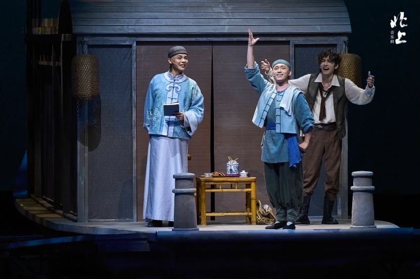 作為北京文化藝術基金2023年度資助項目、“大戲看北京”展演劇目,音樂劇《北上》由中共北京市委宣傳部、北京市文化和旅游局指導,北京廣播電視臺出品,講述了20世紀初漕運總督府翻譯謝平遙與來華考察的意大利人“小波羅”等一同踏上沿京杭大運河北上的旅程,歷經磨礪,終獲曙光,在亂世洪流中建立起深厚友誼。