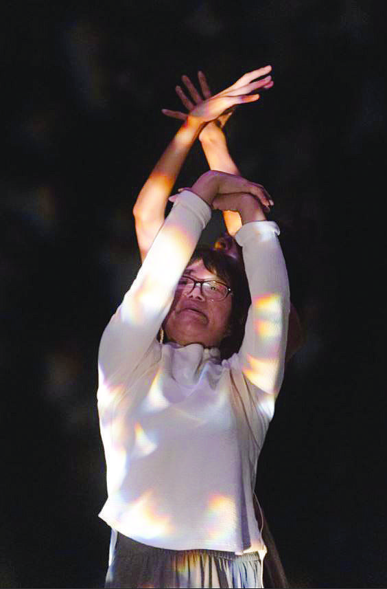 法魯克和余秀華合作詩(shī)歌舞蹈劇場(chǎng)作品《萬(wàn)噸月色》,試圖把詩(shī)里的“陰影”意象轉(zhuǎn)化成某種新鮮的舞臺(tái)象征——讓詩(shī)人在光與暗交錯(cuò)的空間里跳舞,在不同尺寸的“陰影”下舞蹈,表達(dá)不同生命階段對(duì)“陰影”的感受。(均受訪者供圖)