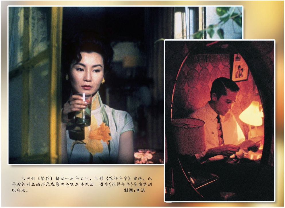 電視劇《繁花》播出一周年之際,電影《花樣年華》重映,以導(dǎo)演特別版的形式在影院與觀眾再見(jiàn)面。圖為《花樣年華》導(dǎo)演特別版劇照。 制圖:李潔