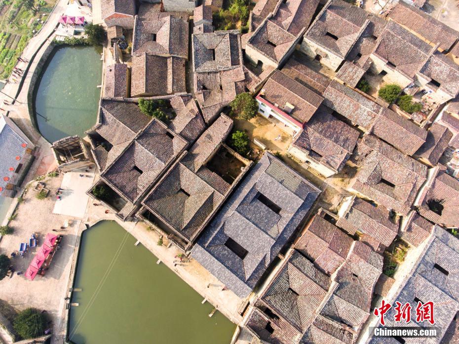 12月10日,航拍位于江西金溪縣有著600多年歷史的中國(guó)歷史文化名村、中國(guó)傳統(tǒng)村落竹橋古村,俯瞰全村,形似一柄巨扇。該村現(xiàn)保存有明代所建民居8幢,明代祠堂1幢,其余為清代建筑,青磚灰瓦,樸實(shí)素雅,為贛派建筑最典型的代表。村前溪水長(zhǎng)流,良田萬(wàn)頃,村后茂林修竹,鳥鳴樹幽,身歷其境,如入畫中。傅建斌 攝