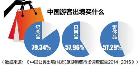 中國游客“買買買”名聲已傳遍全球。LV、Chanel、Hermes、PRADA、Rolex,這些奢侈品名牌服飾、手表店,隨處可見國人身影。而近年來,高端日用品也異軍突起,馬桶蓋、牙膏、電飯煲,甚至鍋碗瓢盆,這些國外超市貨柜上的商品同樣吸引著中國游客。根據(jù)《中國公民出境(城市)旅游消費市場調(diào)查報告2014-2015》,近八成的中國游客在境外旅行時會買紀(jì)念品,一半的游客會購買日用品,與購買奢侈品的游客比例持平。