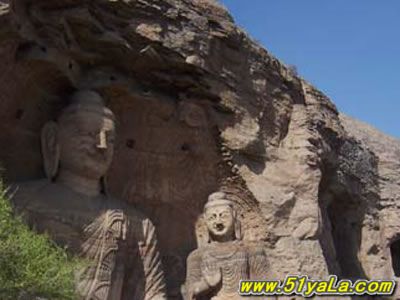 1.云岡石窟 是中國四大石窟之一。其他三大石窟是:敦煌莫高窟、龍門石窟和麥積山石窟。 云岡石窟位于山西省大同市以西16公里處的武周山南麓。石窟始鑿于北魏興安二年(公元453年),大部分完成于北魏遷都洛陽之前(公元494年),造像工程則一直延續(xù)到正光年間(公元520~525年)。石窟依山而鑿,東西綿亙約1公里,氣勢(shì)恢弘,內(nèi)容豐富?,F(xiàn)存主要洞窟45個(gè),大小窟龕252個(gè),石雕造像51000余軀,最大者達(dá)17米,最小者僅幾厘米??咧衅兴_、力士、飛天形象生動(dòng)活潑,塔柱上的雕刻精致細(xì)膩,上承秦漢(公元前221年~公元220年)現(xiàn)實(shí)主義藝術(shù)的精華,下開隋唐(公元581~907年)浪漫主義色彩之先河,是世界聞名的石雕藝術(shù)寶庫之一。1961年國務(wù)院公布為全國重點(diǎn)文物保護(hù)單位,2001年被列為世界文化遺產(chǎn)。