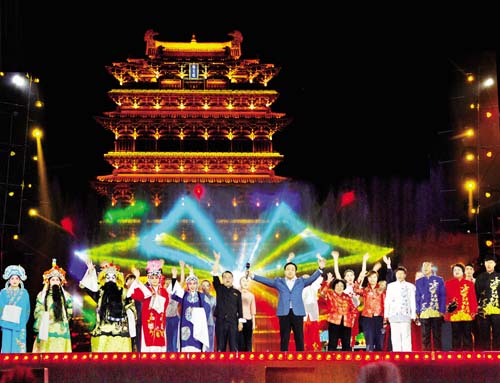 作為主場的運城市,用絳州鼓樂這一傳承千年的世界級非物質文化遺產(chǎn)開場,電視連續(xù)劇《三國演義》關公扮演者陸樹銘威嚴亮相,以關公形象表達運城歷史傳統(tǒng)文化。