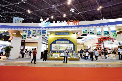 忻州展廳以“欣欣向榮·心靈之舟”為主題布展,展位在設(shè)計(jì)上將“五臺山”藍(lán)天白云與佛教建筑形成的獨(dú)特景色融為一體,從立體空間結(jié)構(gòu)、色彩氛圍渲染和建筑元素搭配等幾個方面著手,設(shè)計(jì)出獨(dú)具忻州特色的“佛教圣境”展廳。(本報(bào)記者 馮曉磊 攝影報(bào)道)