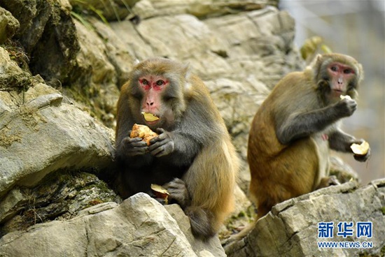 寒冬時節(jié),在湖北省西部山區(qū)的恩施土家族苗族自治州宣恩縣獅子關(guān)、封口壩等村,數(shù)以百計的野生獼猴走出森林向人們生活的村莊靠攏,以獲取足夠的過冬食物,成為當?shù)囟纠镆坏廓毺氐淖匀簧鷳B(tài)景觀,吸引不少游客前來參觀。新華社發(fā)(宋文 攝)