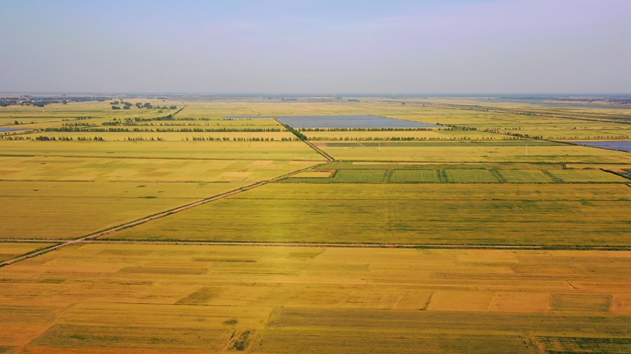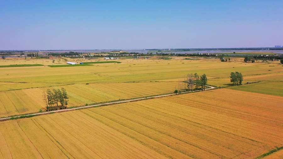 初夏時節(jié),安徽省潁上縣廣袤大地上麥香四溢。麥田在陽光下泛著金黃,麥浪滾滾,收獲在望。麥田、村落、河流、阡陌構(gòu)成一幅美麗的田園風(fēng)光。?