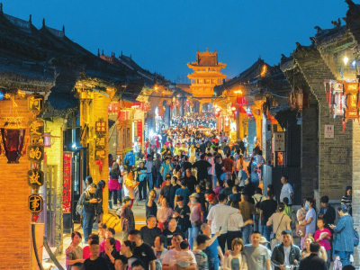 5月13日晚,平遙古城燈火通明,流光溢彩,吸引不少游客前來游覽觀光、打卡購物。平遙縣著眼千年古城特點,形成“游、購、吃、娛”一體化新業(yè)態(tài),激發(fā)消費新活力,推動當地經濟增長和文化傳播。
