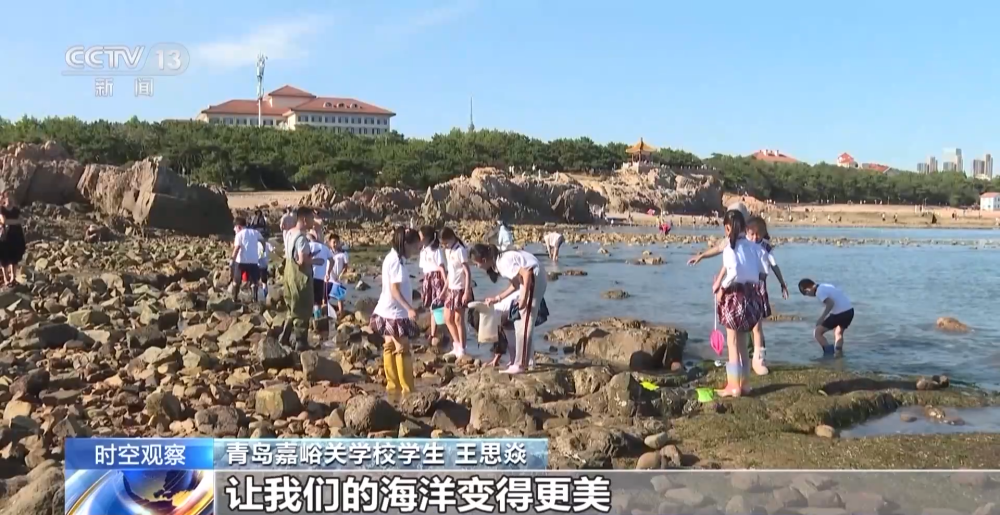 在青島第二海水浴場,中國海洋科學(xué)研究所的科研人員帶領(lǐng)著研學(xué)團(tuán)的學(xué)生在海洋潮間帶認(rèn)識(shí)、采集海藻。隨后孩子們?cè)诶蠋熤笇?dǎo)下對(duì)藻類進(jìn)行鑒定、清洗、制作藻類臘葉標(biāo)本,聽專家科普海洋知識(shí)。