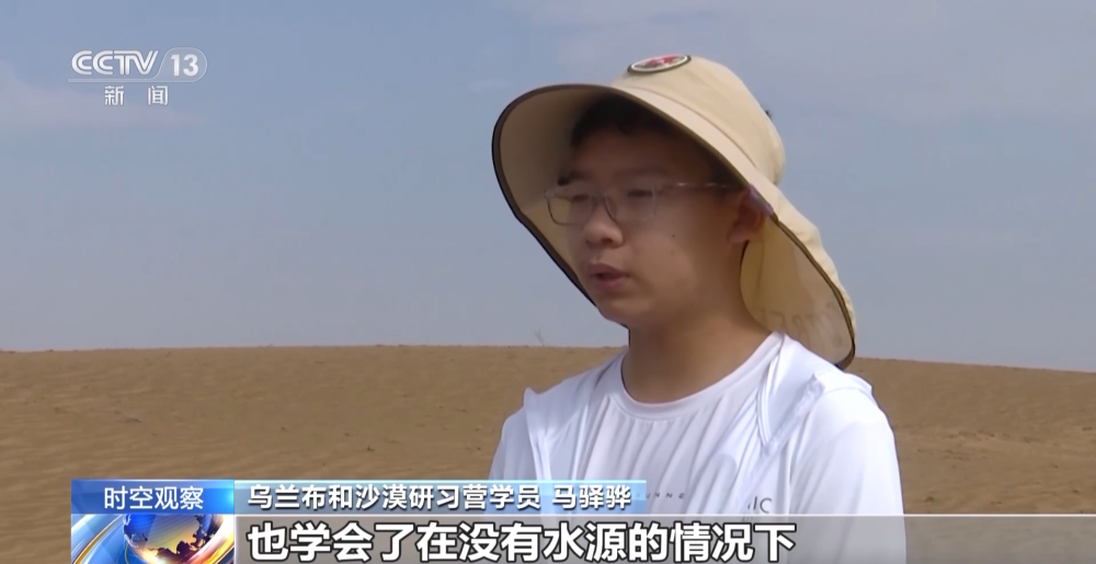 烏蘭布和沙漠研習(xí)營學(xué)員 馬驛驊:通過這次研學(xué)之旅沙漠徒步,學(xué)會(huì)了在沒有指南針的情況下,如何用各種辦法來判別方向,也學(xué)會(huì)了在沒有水源的情況下,如何獲得水源。