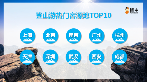 途牛截至目前最新預(yù)訂數(shù)據(jù)顯示,2023年以來,選擇登山游相關(guān)旅游產(chǎn)品的用戶出游人次占比達29%,是途牛用戶最熱衷的出游主題之一。其中,上海、北京、南京、廣州、杭州、天津、深圳、武漢、西安、成都等地用戶對登山游擁有更高的熱情。