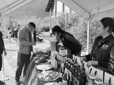 在旅途中,不斷有村落和觀景臺交替出現(xiàn)。觀景臺上視野開闊,空氣清新,吸引了不少游客,也有附近的村民擺攤賣貨。售賣商品琳瑯滿目,有小吃、飲料、文創(chuàng)旅游紀念品等,還有附近招攬游客入住民宿的店主。在觀景臺欣賞風(fēng)景的游客鄭川,來自河南駐馬店,就住在村民家的民宿中?!耙郧皝砺糜?,主要是奔著名氣大的王莽嶺,現(xiàn)在交通越來越方便,沿著旅游公路到處都是風(fēng)景!”鄭川說。
