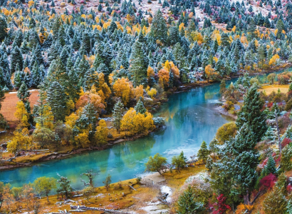 這是在林芝工布江達縣拍攝的雪后峽谷景觀(無人機照片,10月28日攝)。時值金秋,西藏林芝市秋色已濃,黃葉與初雪交織,流水并雪山輝映,景色如詩如畫。