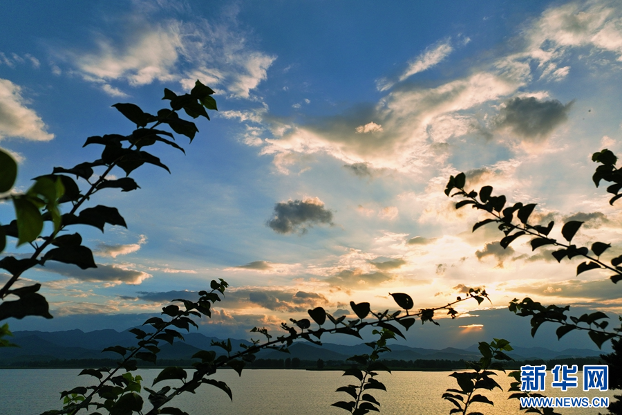 7月27日,在河南省鎮(zhèn)平縣高丘水庫拍攝的朝霞。
