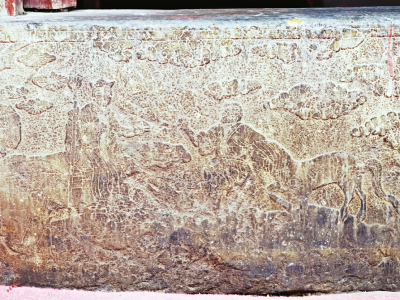 這是在澤州縣金村鎮(zhèn)顯慶寺毗盧殿殿門(mén)長(zhǎng)約3米的地伏上雕刻的“西游記”故事浮雕,端詳四幅浮雕,觀(guān)者有翻看連環(huán)畫(huà)之感!