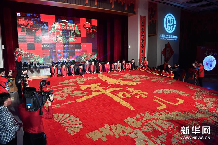 1月11日,“尋找曾經(jīng)的年味兒”全國大型公益行動在北京中國婦女兒童博物館啟動,通過發(fā)放年味兒畫冊、舉辦年味兒趣味活動,弘揚傳統(tǒng)文化,同時為貧困家庭、醫(yī)護(hù)工作者送去問候與關(guān)愛?;顒又校山?萬個紅包拼鋪而成的64平方米“最大紅包拼圖”載入吉尼斯世界紀(jì)錄。春節(jié)期間,北京、濟(jì)南、石家莊、鄭州、哈爾濱等五座城市都將開展尋找年味兒的相關(guān)活動。新華社記者 李鑫 攝