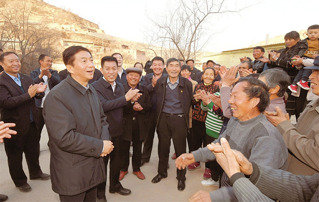 三月二十五日,駱惠寧在臨縣大禹鄉(xiāng)前陽塔村指導干部進村服務工作,與村民們親切交談,希望在整村脫貧基礎上確立新的目標,繼續(xù)努力奮斗,使日子越過越好。