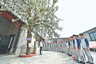| 4月4日,河北省南宮市豐翼中學(xué)學(xué)生來(lái)到八路軍129師東進(jìn)縱隊(duì)司令部舊址,開展憶英烈活動(dòng)。 趙永輝攝(影像中國(guó)) |
