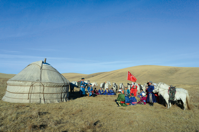 2017年,內蒙古自治區(qū)蘇尼特右旗烏蘭牧騎隊員們聯名給習近平總書記寫信,表達了為繁榮發(fā)展社會主義文藝事業(yè)作貢獻的決心。2017年11月21日,習近平總書記給他們回信,勉勵他們扎根生活沃土,服務牧民群眾,推動文藝創(chuàng)新,努力創(chuàng)作更多接地氣、傳得開、留得下的優(yōu)秀作品,永遠做草原上的“紅色文藝輕騎兵”。圖為2018年11月20日,烏蘭牧騎隊員們又一次奔赴牧區(qū)為牧民們表演節(jié)目。 新華社發(fā) 東哈達/攝