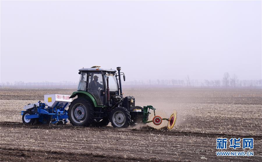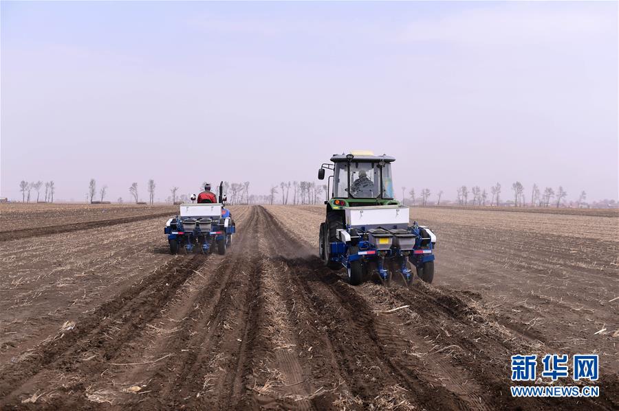 4月23日,吉林省榆樹(shù)市弓棚鎮(zhèn)農(nóng)民在播種玉米。新華社記者 林宏 攝