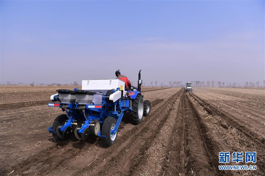 4月23日,吉林省榆樹(shù)市弓棚鎮(zhèn)農(nóng)民在播種玉米。 新華社記者 林宏 攝