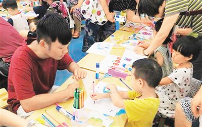 圖為臺灣實習生在北京首都圖書館少兒閱覽室教小朋友做手工。李晗雪 攝