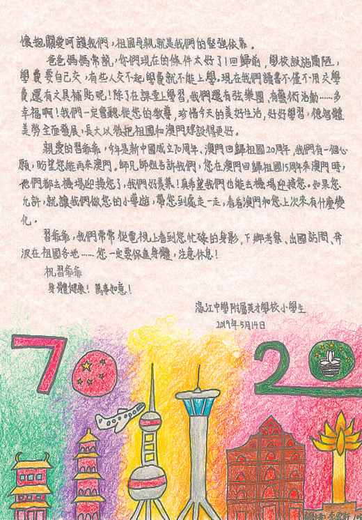 | 習(xí)近平回信勉勵(lì)澳門少年兒童 祝全國(guó)小朋友們“六一”國(guó)際兒童節(jié)快樂(lè) |