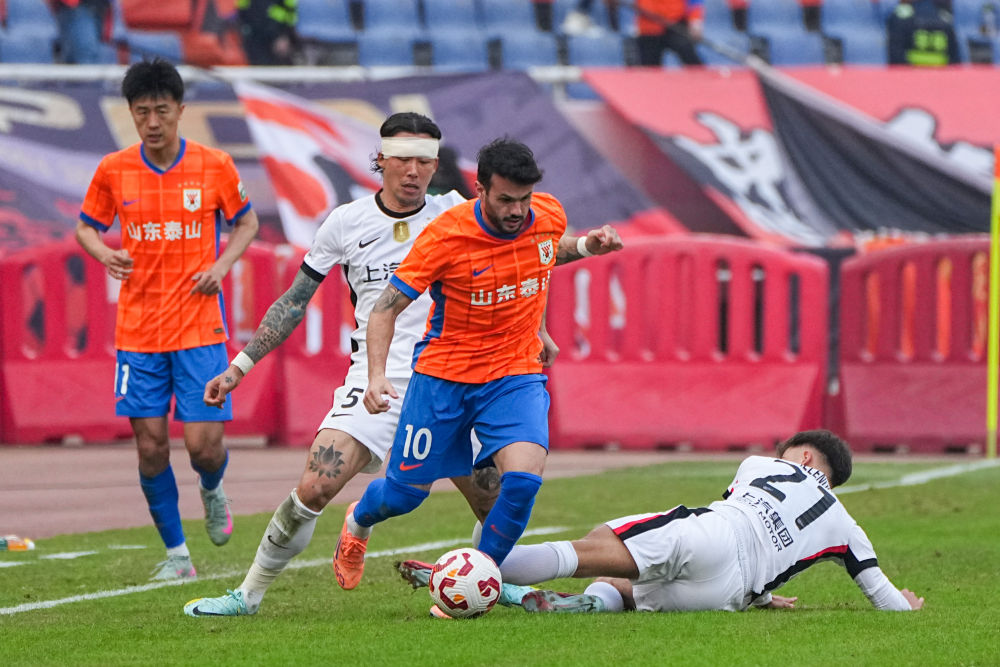 本輪比賽開(kāi)始前,排名榜首的上海海港僅領(lǐng)先第二名成都蓉城2分。上海海港本輪客場(chǎng)對(duì)陣山東泰山,開(kāi)場(chǎng)不久由李新翔打進(jìn)一球,取得領(lǐng)先。但隨后山東泰山迅速調(diào)整,并逐漸掌握主動(dòng)。第41分鐘,山東泰山外援澤卡反擊中突破送出斜傳,卡扎伊什維利跟進(jìn)殺入禁區(qū)低射,將比分扳為1:1。