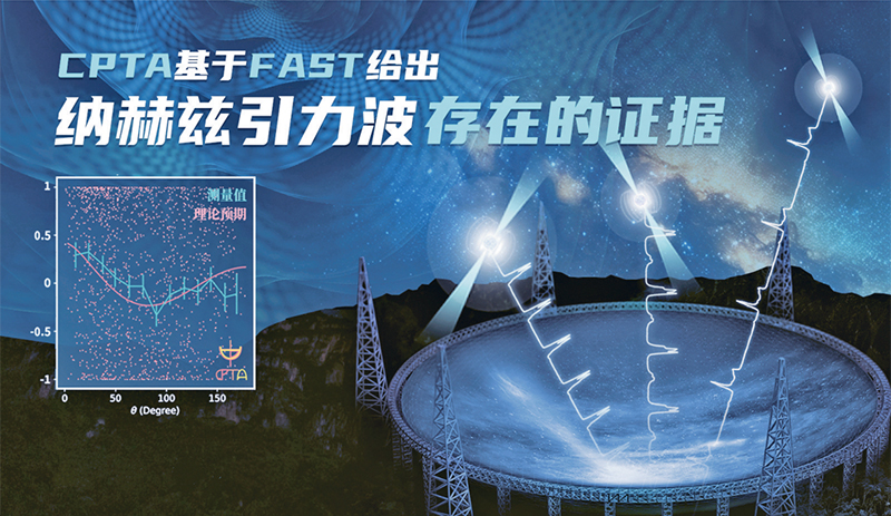 中國脈沖星測時陣列(CPTA)研究團(tuán)隊(duì),利用被譽(yù)為“中國天眼”的500米口徑球面射電望遠(yuǎn)鏡(FAST),發(fā)現(xiàn)納赫茲引力波存在的關(guān)鍵性證據(jù)。圖為這一發(fā)現(xiàn)的示意圖。 中國科學(xué)院供圖