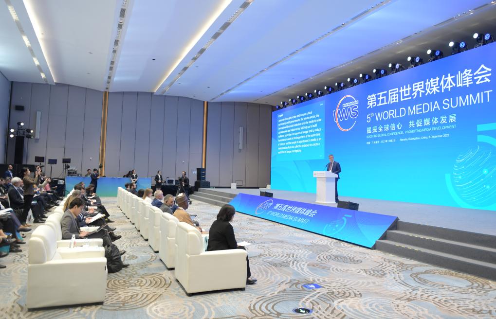 2023年12月4日,以“提振全球信心 共促媒體發(fā)展”為主題的第五屆世界媒體峰會(huì)在廣州南沙舉行平行分論壇活動(dòng),嘉賓在分論壇上發(fā)言。新華社記者 盧漢欣 攝