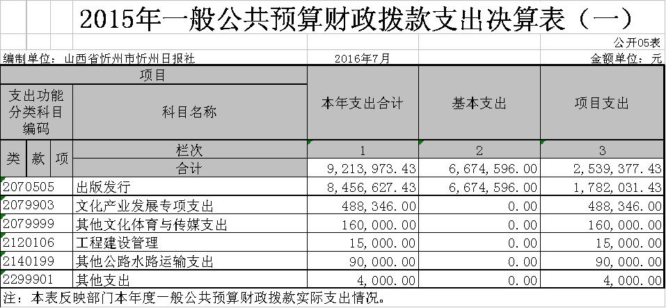 忻州日報社2015年度部門決算