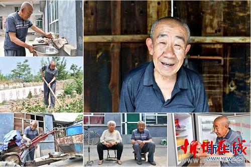 郭中其,男,1949年出生,山西省長(zhǎng)治市潞城區(qū)常村人,全家6口人靠種地為生,因家人重病而造成生活困難。被納入建檔立卡貧困戶(hù)后,郭中其家人治病的花銷(xiāo)顯著減少,子女參加了免費(fèi)技能培訓(xùn)并找到了工作,家里的生活條件得到了改善,2017年全家脫了貧。 右上:郭中其肖像;左上:郭中其在院子里接水;左中:郭中其在田地里鋤草;左下:郭中其在擦拭拖拉機(jī);下中:郭中其和老伴坐在院子里;下右:郭中其從冰箱里拿出西紅柿(拼版照片,6月12日攝)。 地處晉東南的山西省長(zhǎng)治市,位于由太行山、太岳山環(huán)繞而成的上黨盆地中。在群山中、崖壁上,許多村莊自然條件惡劣,基礎(chǔ)設(shè)施落后,脫貧致富是大山深處人們的迫切心愿。 近年來(lái),一場(chǎng)場(chǎng)脫貧攻堅(jiān)戰(zhàn),在一個(gè)個(gè)深山村打響。政府全力探索脫貧路徑的同時(shí),山區(qū)百姓因地制宜,靠自己的雙手和智慧走上致富路,交出了一份扎實(shí)的脫貧答卷。 記者在太行山、太岳山一路尋訪,記錄下多位70歲老人的生活。這些共和國(guó)的同齡人,親歷了山鄉(xiāng)的巨變,見(jiàn)證著長(zhǎng)治山區(qū)脫貧攻堅(jiān)偉大工程的一步步推進(jìn)。 新華社記者 曹陽(yáng) 攝