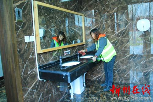 忻州古城公共衛(wèi)生間的管理也達(dá)到了一流水平。每個公共衛(wèi)生間都有專人管理,管理人員的清潔、擦洗,每天不得少于8次,要求做到無殘留、無垃圾、無異味。