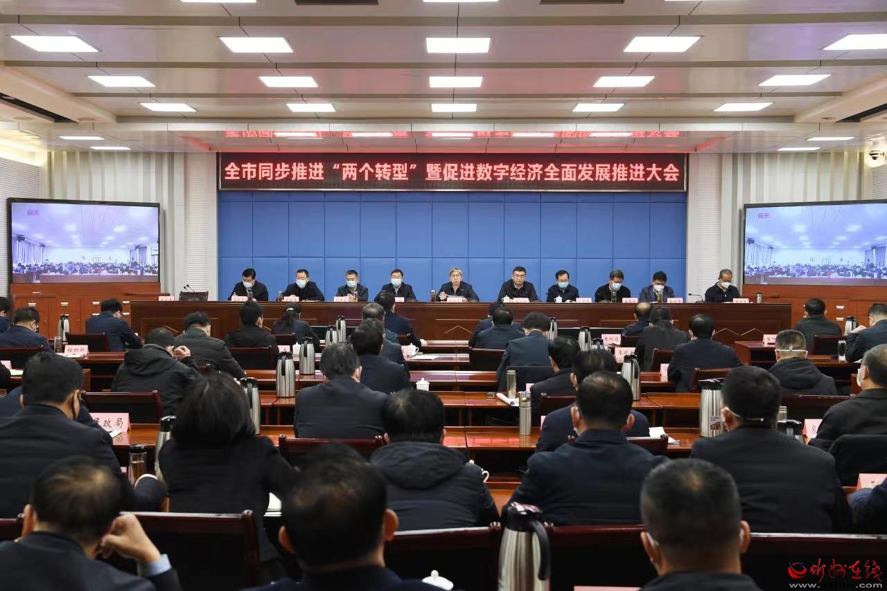 12月9日,全市同步推進(jìn)“兩個(gè)轉(zhuǎn)型”暨促進(jìn)數(shù)字經(jīng)濟(jì)全面發(fā)展大會(huì)召開。市委書記朱曉東出席會(huì)議并講話。市委副書記、市長李建國主持會(huì)議并講話,市人大常委會(huì)主任王珍,市政協(xié)主席范建民,市領(lǐng)導(dǎo)劉卓良、趙新年、張文偉、溫建軍、張宇光等出席。