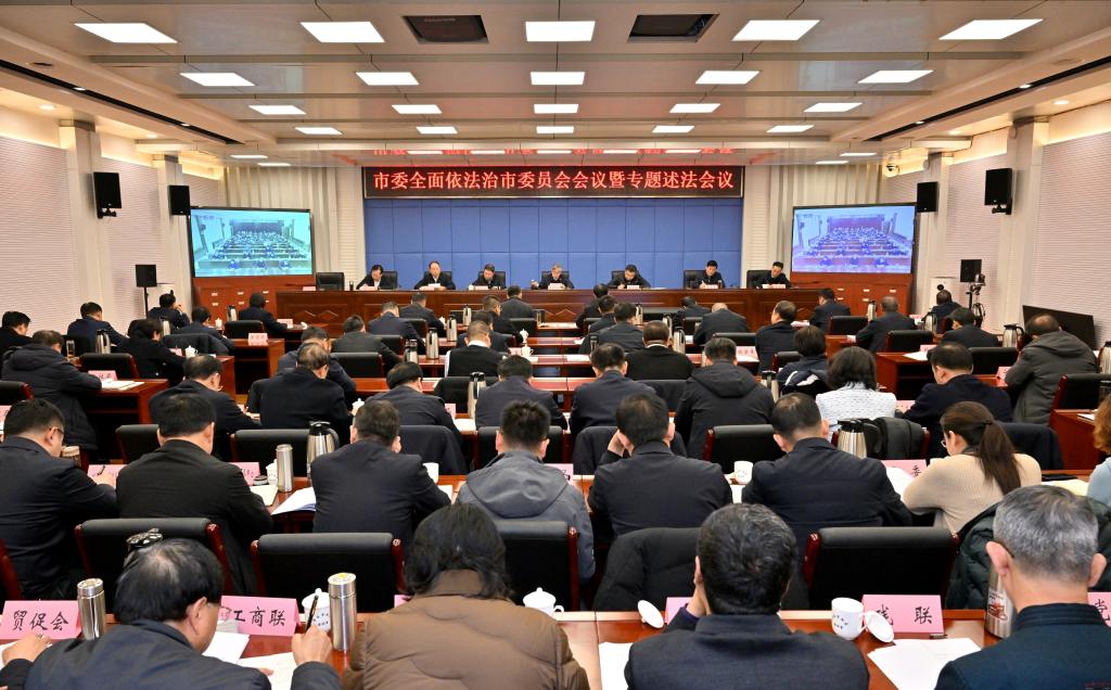 1月30日,市委全面依法治市委員會會議暨專題述法會議召開。會議深入學習貫徹習近平法治思想,認真落實黨中央和省委部署要求,在全面總結(jié)工作、分析研判形勢、強化工作舉措的基礎上,認真開展黨政主要負責人專題述法和“誰執(zhí)法誰普法”履職報告評議,進一步統(tǒng)一思想、深化認識,壓實責任、凝聚合力,全力推動法治忻州建設邁上新臺階。市委全面依法治市委員會主任、市委書記朱曉東出席并講話,市委全面依法治市委員會副主任、市委副書記、市長李建國主持會議。市委全面依法治市委員會副主任、市委常委、政法委書記、宣傳部部長王琳玉,市委常委、秘書長溫建軍,副市長、市公安局局長史洪波,市中級人民法院院長栗向東,市人民檢察院檢察長郭鴻以及市人大常委會秘書長李強、市政府秘書長張艮生、市政協(xié)秘書長王培雄出席會議。