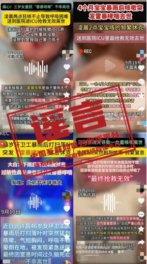 真相:近日,多個(gè)賬號(hào)發(fā)布視頻稱“河南許昌,暴雨天氣過(guò)后引發(fā)雷暴哮喘、雷暴咳嗽致人死亡”,引發(fā)關(guān)注。經(jīng)許昌市衛(wèi)健委核實(shí),近期該市醫(yī)療衛(wèi)生機(jī)構(gòu)未發(fā)現(xiàn)“雷暴天氣引發(fā)哮喘,經(jīng)搶救無(wú)效死亡”事件。網(wǎng)傳信息系謠言。