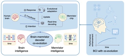 天津大學與清華大學的聯(lián)合研究團隊針對這一難題,發(fā)現(xiàn)腦電信號的非平穩(wěn)特性與任務腦電演變密切相關(guān)。基于此,他們創(chuàng)新性地提出了“雙環(huán)路腦機協(xié)同演進框架”,并通過憶阻器神經(jīng)形態(tài)器件加以實現(xiàn)。在“雙環(huán)路”框架下,腦與機的學習環(huán)路相互協(xié)同,共同促進系統(tǒng)性能的提升。