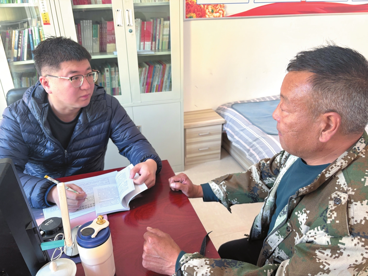 包聯(lián)村的邊大爺至今記得,2023年冬,家里遭遇了一場大火。接到消息后,劉昕第一時(shí)間趕到現(xiàn)場。這位戴眼鏡的書記穿著厚重的羽絨服勘查情況,一邊協(xié)調(diào)鎮(zhèn)民政辦申請臨時(shí)救助,一邊自掏腰包買米面油送給老人:“大爺,別著急,咱們一起想辦法。”后來,在鎮(zhèn)黨委安排下,邊大爺家的房屋得到了免費(fèi)修繕,還拿到了專項(xiàng)救助,平穩(wěn)度過了寒冬。“幫一個(gè)人就是救一個(gè)家?!眲㈥康挠浭卤纠镉浿?lián)村走訪時(shí)監(jiān)測戶的情況:誰有慢性病需定期用藥,誰家孩子上學(xué)要協(xié)調(diào),哪家的屋頂該修了……
