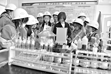 走進化驗室,小記者們很快被眼前的儀器設(shè)備吸引?!斑@里是糧食的‘體檢中心’,每一批糧食運進糧庫前,都要先在這體檢,合格了才能入庫。”工作人員的話讓孩子們瞬間安靜,紛紛湊到儀器前仔細觀察。