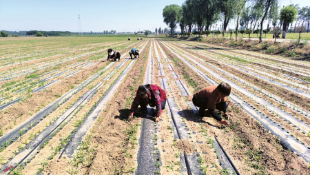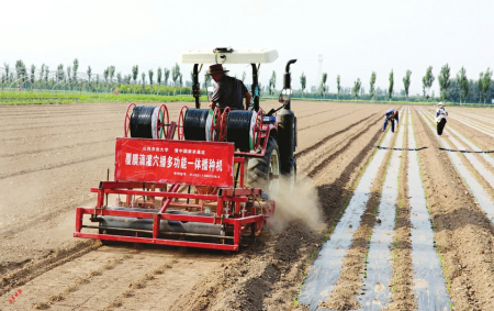 3.多功能一體播種機鋪設滴管。