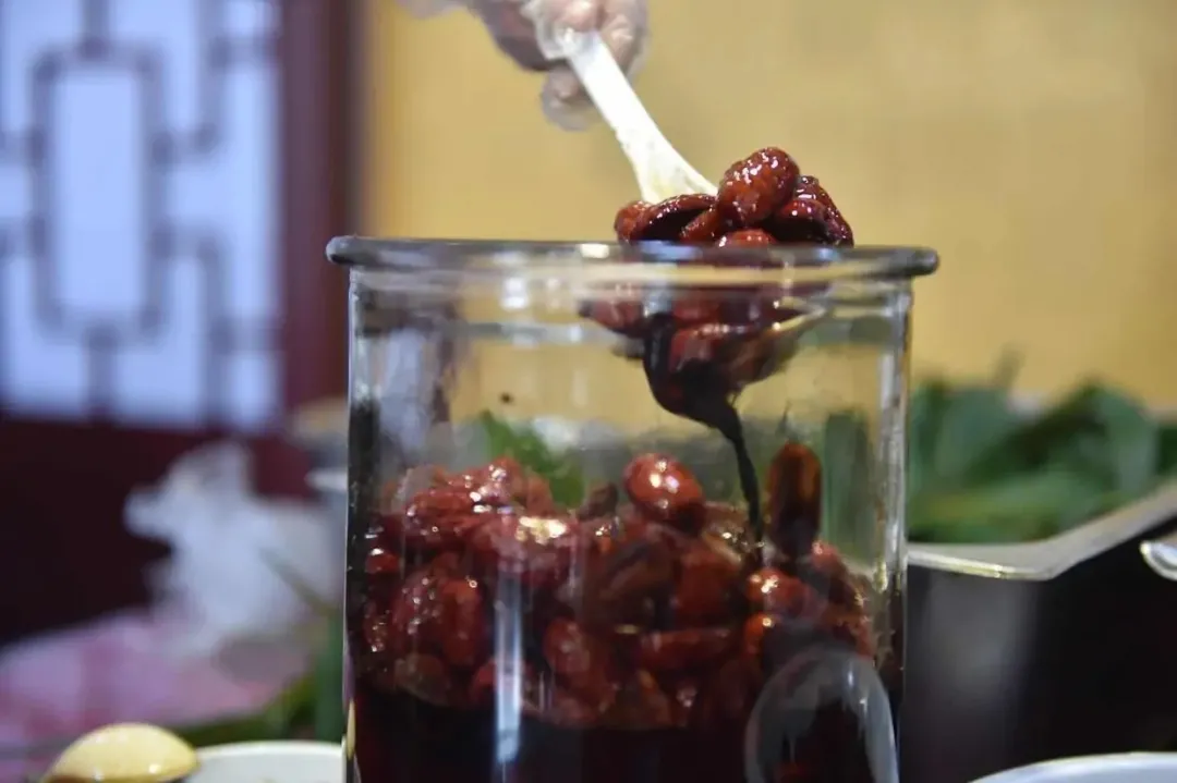 把優(yōu)質(zhì)的紅棗用3年6度的老陳醋浸泡半個(gè)月,充分發(fā)揮山西老陳醋色、香、醇、濃、酸的優(yōu)點(diǎn)。讓紅棗甜中帶酸,酸中帶香。