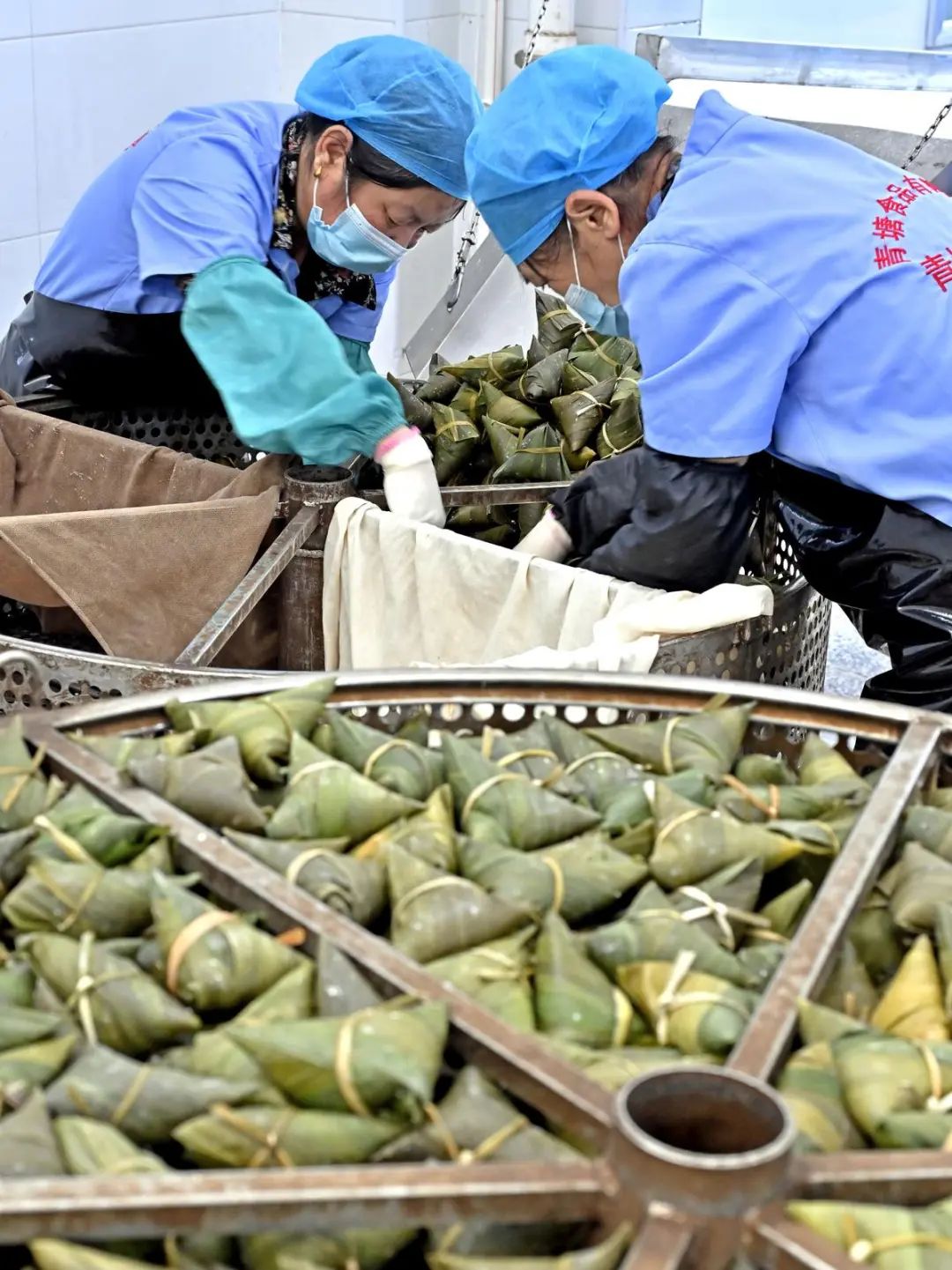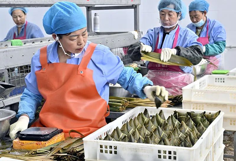 二是工藝出“粽”?!叭斎~,三顆棗,一百克糯米不能少。”青塘粽子不僅全手工傳統(tǒng)工藝包制,更輔以現(xiàn)代高溫滅菌和真空包裝技術(shù),傳統(tǒng)與現(xiàn)代相結(jié)合,讓青塘粽子美味更健康。