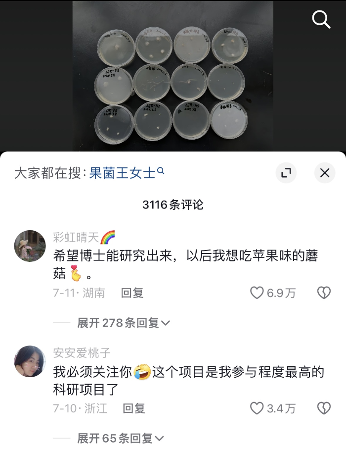 其次,他們“網(wǎng)友有疑問,科普來解惑”的科普答疑方式很活。趙琪老師和許博士在收到“果菌王”后,會實時更新研究最新進展,硬生生地把科普變成了“連續(xù)劇”。