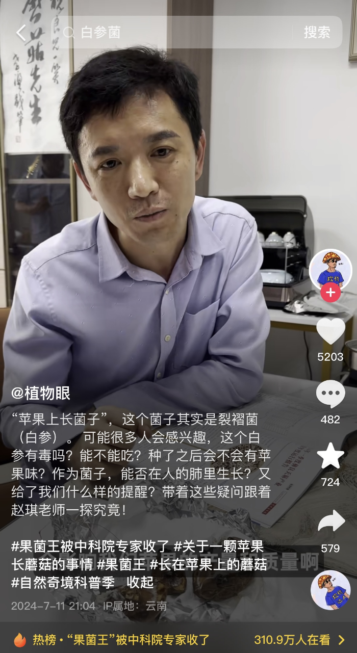 將蘋果長蘑菇跟網(wǎng)友長知識連接起來的,是涉事科研人員有料且有趣的科普。他們來得正是時候的科普,讓此事在“長菌蘋果”自帶的獵奇色彩和“千里求菌”的戲劇性之外,多了些社會價值:在他們順勢科普前,“長菌蘋果”留給網(wǎng)友的就是個“果菌王”的網(wǎng)梗;在他們展開科普后,“長菌蘋果”讓很多網(wǎng)友頭一次知道了“裂褶菌(又叫白參)”的存在。