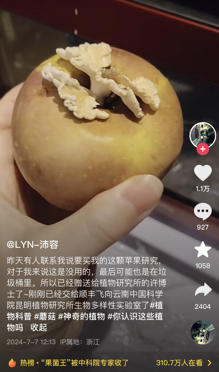就這樣,知識以一種好玩的方式進入了許多網(wǎng)友的大腦。一株奇異的蘑菇,一項有意思的發(fā)現(xiàn),一系列菌類知識的科普,被一顆小小的蘋果串了起來,最終變成了一次帶動知識普及的契機。