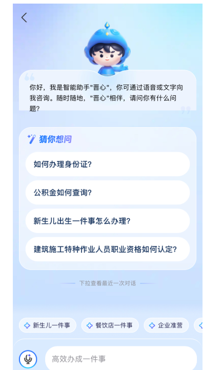 同時,依托螞蟻集團的百靈大模型與山西省政務服務積累的政務語料,構建權威專業(yè)的知識體系,省行政審批服務管理局與螞蟻集團支付寶公司聯合研發(fā)推出“三晉通”政務辦事智能體“晉心”,通過與數字人的互動問答,24小時不間斷提供的精準咨詢服務和個性化服務推薦。
