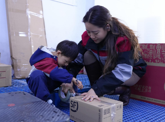 34歲的閆詩琪,作為山西順豐核馨苑營業(yè)店的快遞員,每日穿梭于各個(gè)小區(qū)之間,忙碌地收派包裹。5歲的兒子辰辰,在活動(dòng)當(dāng)天跟著媽媽踏上了快遞派送之旅。當(dāng)辰辰看到媽媽裝滿一車廂的快遞,得知這只是上午的任務(wù)量,下午還有更多時(shí),滿臉的驚訝寫滿了對(duì)媽媽工作量的難以置信。