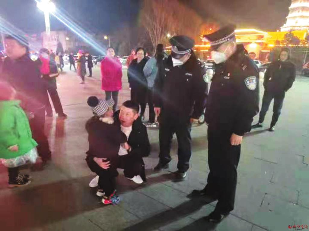 春節(jié)期間,五寨縣公安民警及時(shí)為走失兒童尋找家人。 谷寶龍 攝